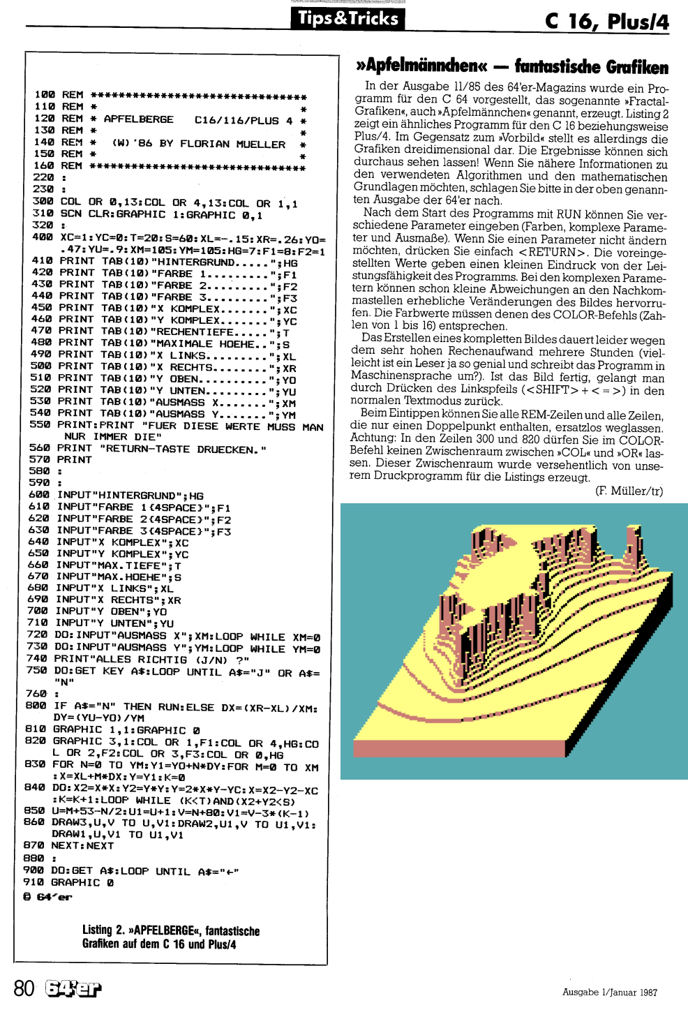 Reproduction of a C16 Basic listing of the same name from 1987 found (here).